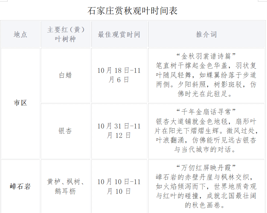 石家庄赏秋观叶时间表来了!最佳观赏时间从10月中旬开始